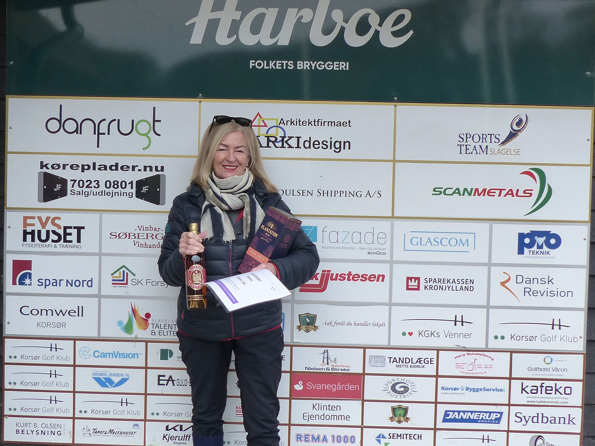 Åse modtog en flaske rom fra Liljecaféen tillige med et gavekort på kr. 250,-, 1 dusin bolde fra Golf Shop Korsør og en flaske ”Plantation Rum Gran Anejo” fra Søberg Vin i Korsør.