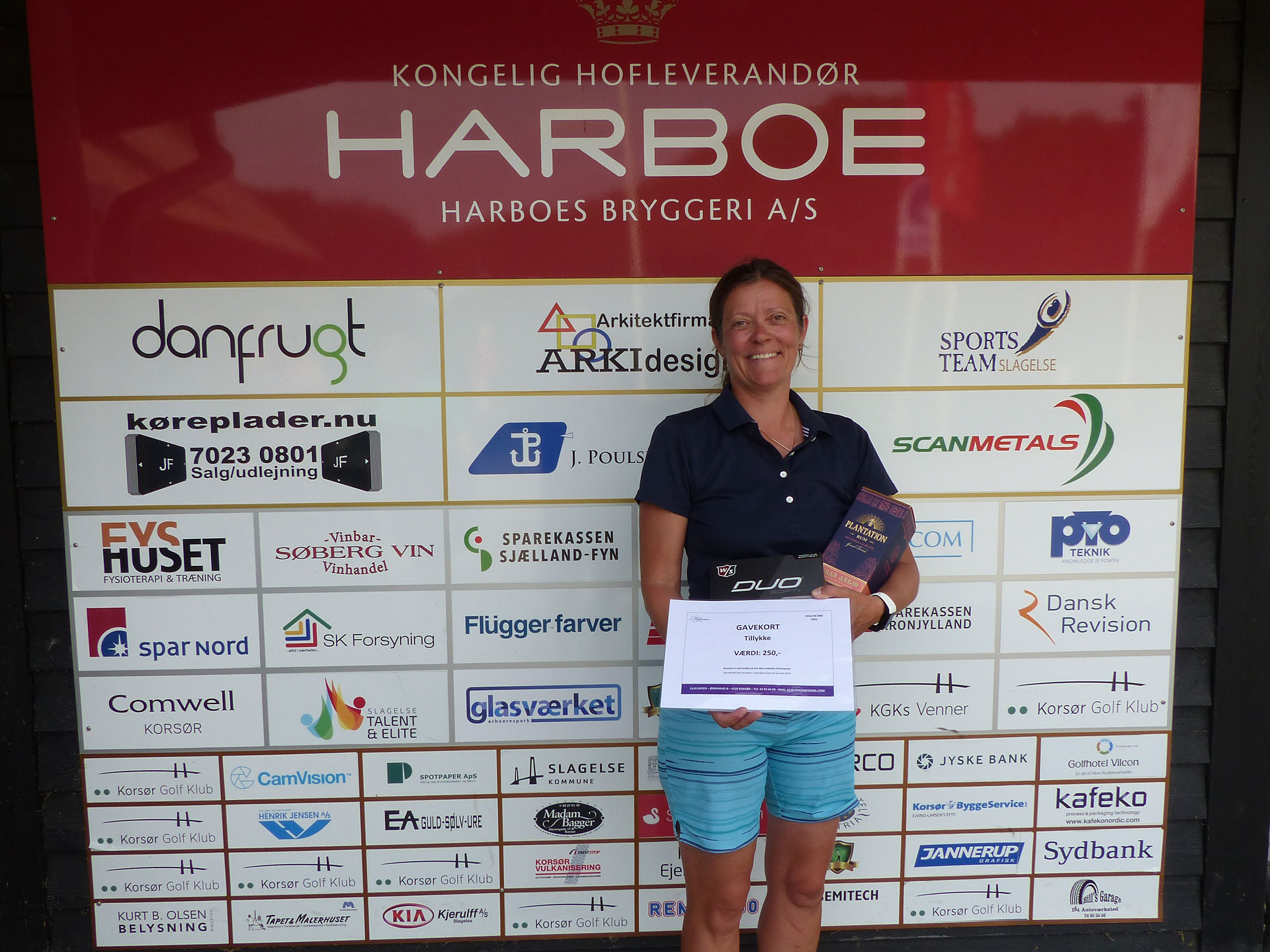 Gritt modtog en flaske rom fra Liljecaféen tillige med et gavekort på kr. 250,-, 1 dusin bolde fra Golf Shop Korsør og en flaske ”Plantation Rum Gran Anejo” fra Søberg Vin i Korsør.