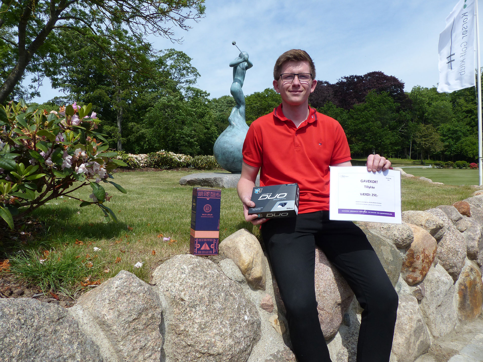 Mads modtog en flaske rom og et gavekort på kr. 250,- til Liljecafeén, 1 dusin bolde fra Golf Shop Korsør og en flaske ”Plantation Rum Gran Anejo” fra Søberg Vin i Korsør.