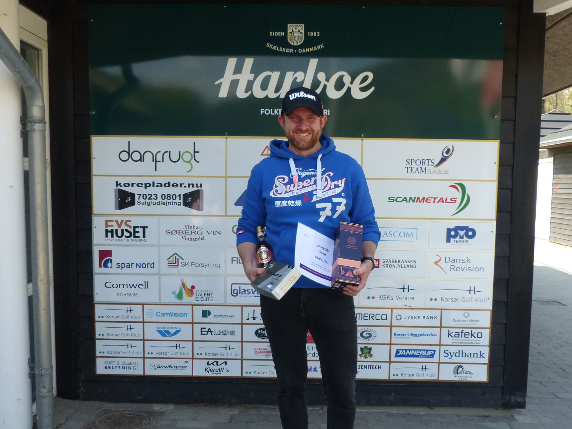 Michael modtog en flaske rom fra Liljecaféen tillige med et gavekort på kr. 250,-, 1 dusin bolde fra Golf Shop Korsør og en flaske ”Plantation Rum Gran Anejo” fra Søberg Vin i Korsør.