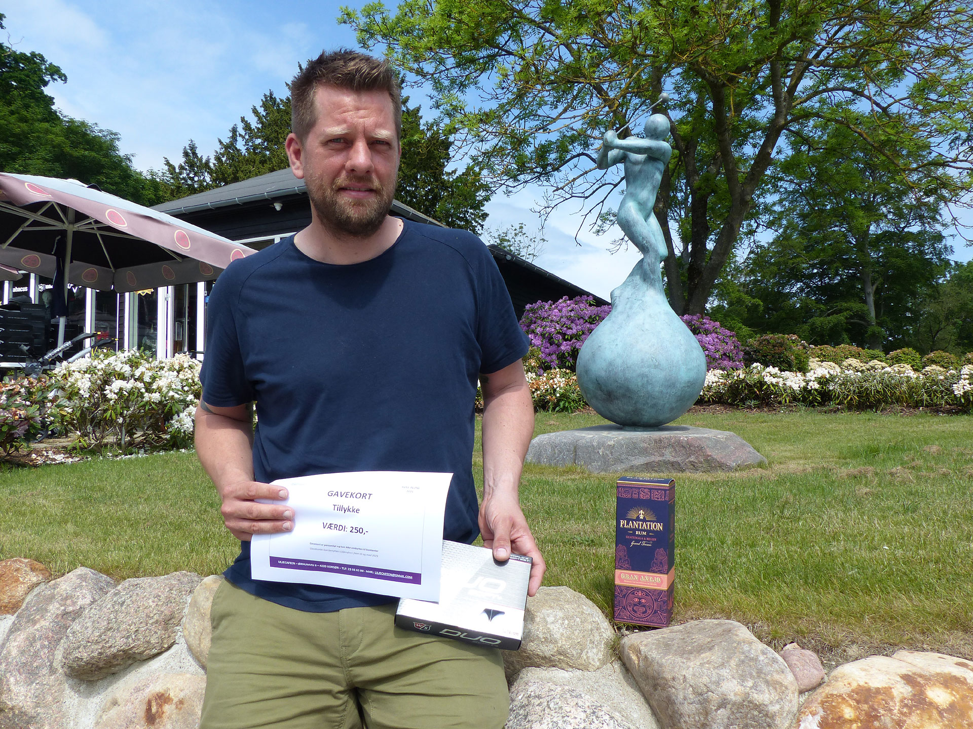 René modtog en flaske rom og et gavekort på kr. 250,- til Liljecafeén, 1 dusin bolde fra Golf Shop Korsør og en flaske ”Plantation Rum Gran Anejo” fra Søberg Vin i Korsør.
